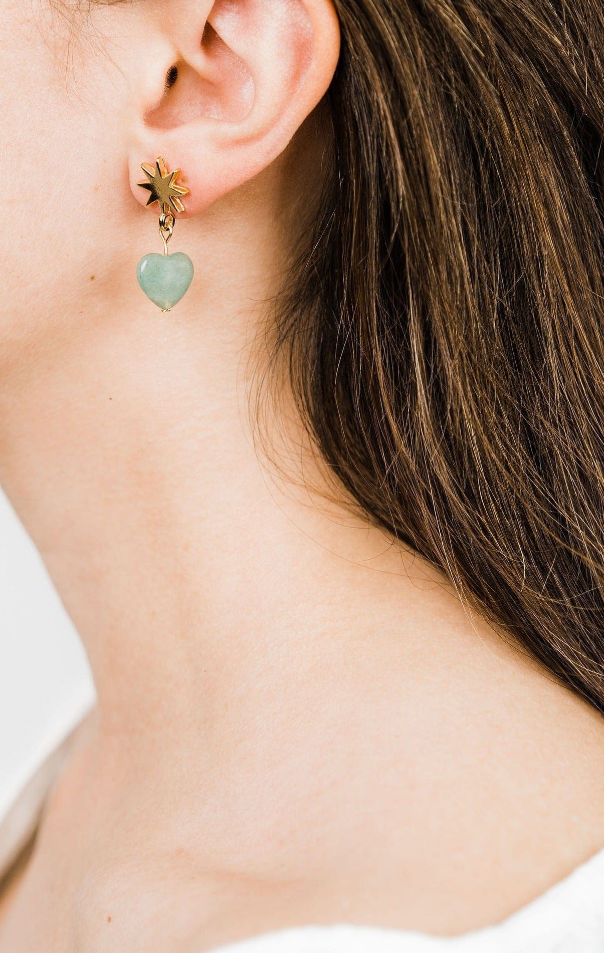 gold star + green aventurine heart earrings - Earrings - VUE by SEK