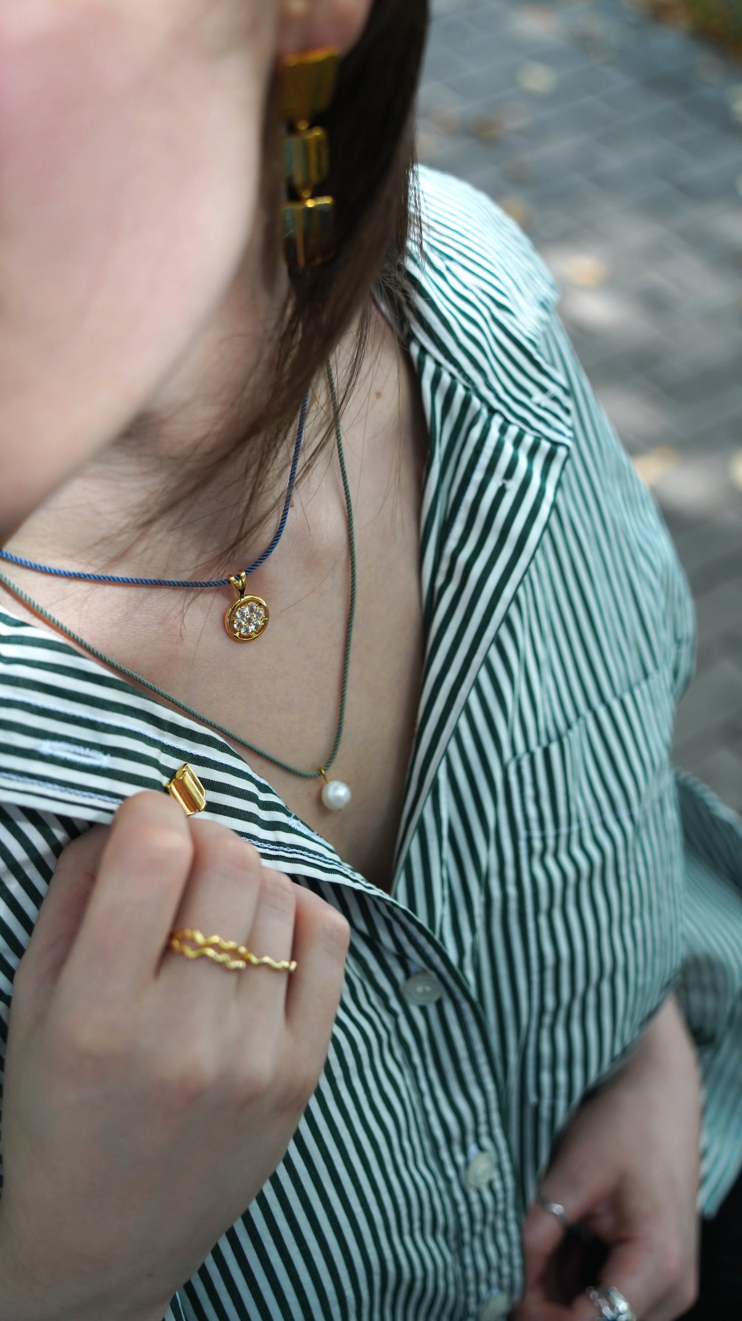 pearl + teal cord necklace - Necklaces - VUE by SEK